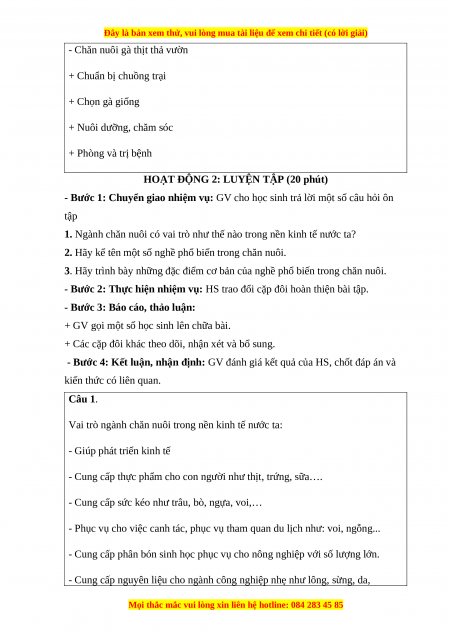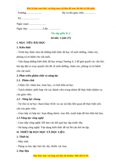Giáo án Công nghệ 7 Ôn tập giữa kì 2 (Chân trời sáng tạo)
