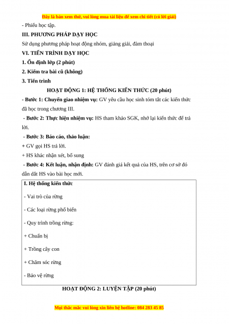 - Các loại rừng phổ biến - Quy trình trồng rừng: + Chuẩn bị + Trồng cây con + Chăm sóc rừng - Bảo vệ rừng