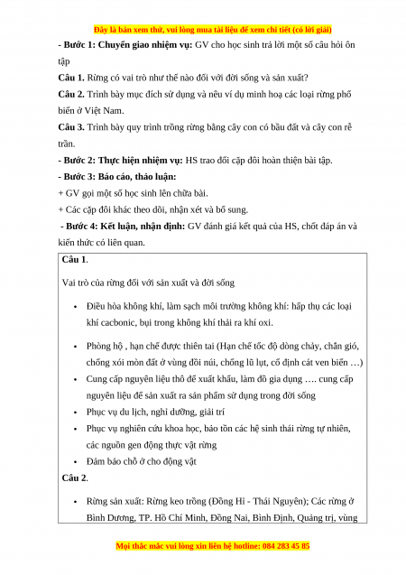 Câu 1. Rừng có vai trò như thế nào đối với đời sống và sản xuất?