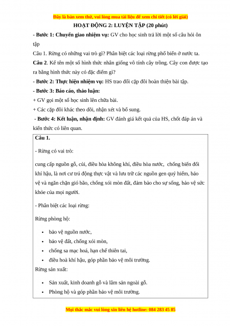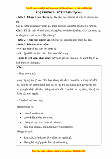 - Bước 4: Kết luận, nhận định: GV đánh giá kết quả của HS, chốt đáp án và kiến thức có liên quan. Câu 1. - Rừng có vai trò: