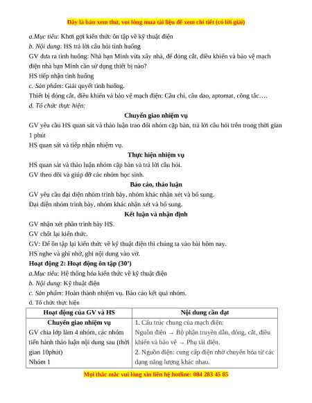 a.Mục tiêu: Củng cố kiến thức về kỹ thuật điện