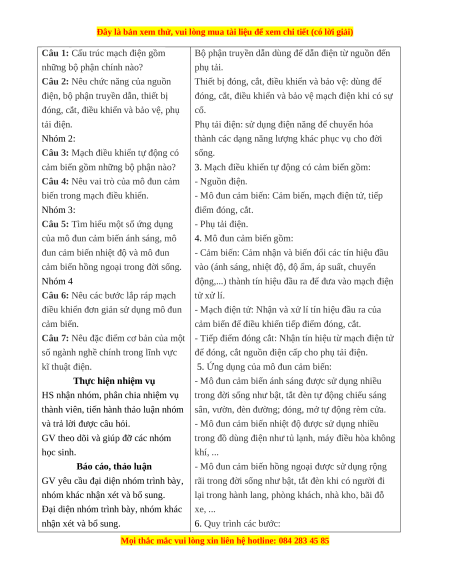 tiến hành thảo luận nội dung sau (thời khiển và bảo vệ → Phụ tải điện. gian 10phút)