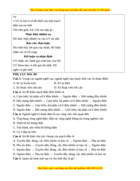 - Giao tiếp công nghệ: Đọc được một số thuật ngữ dùng trong kỹ thuật điện.