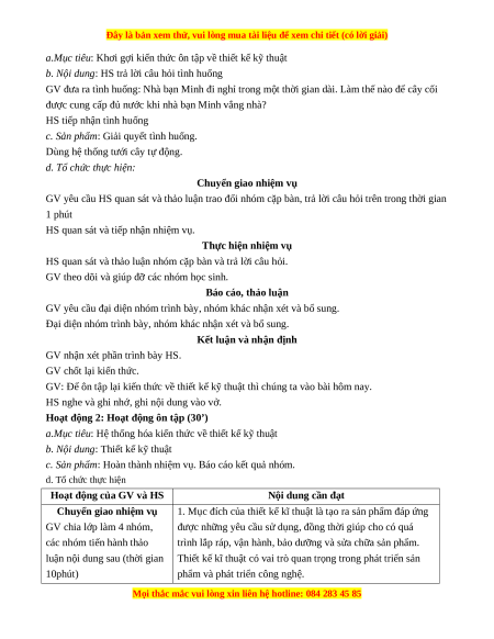 a.Mục tiêu: Hệ thống hóa kiến thức về thiết kế kỹ thuật