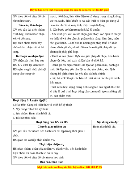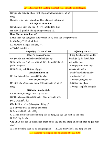 a.Mục tiêu: Củng cố kiến thức về thiết kế kỹ thuật