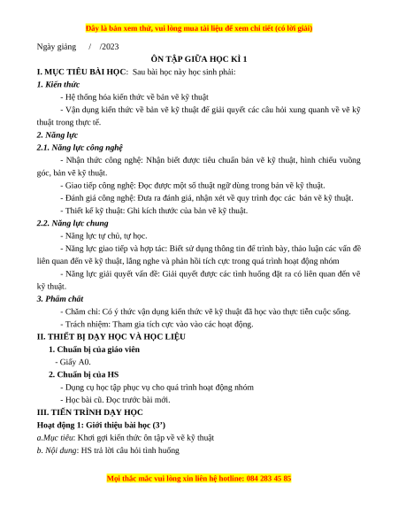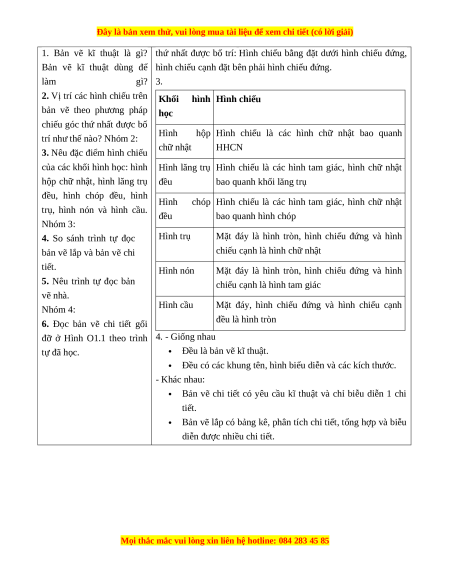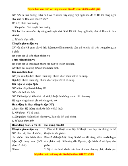 - Giao tiếp công nghệ: Đọc được một số thuật ngữ dùng trong bản vẽ kỹ thuật.