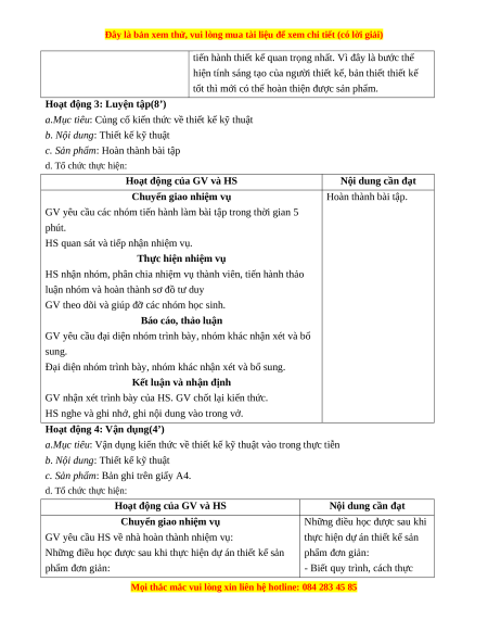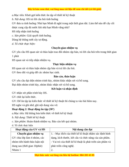 a.Mục tiêu: Củng cố kiến thức về thiết kế kỹ thuật