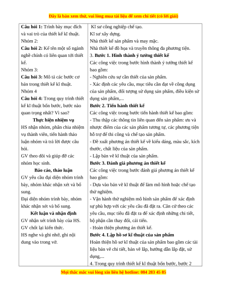 1. - Mục đích của thiết kế kĩ thuật nhằm xác định hình
