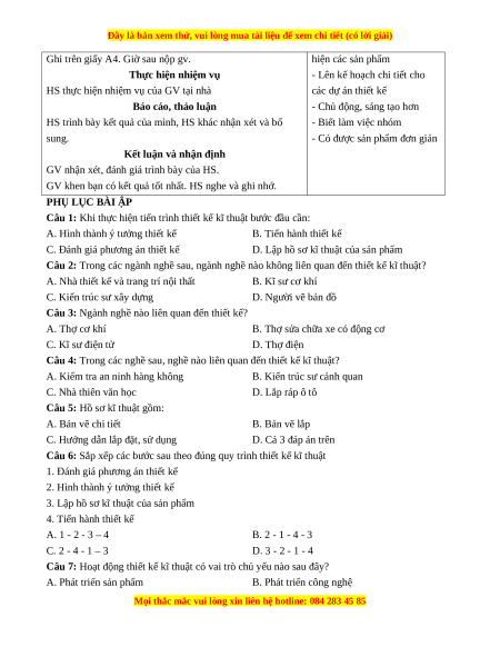 - Vận dụng kiến thức về thiết kế kỹ thuật để giải quyết các câu hỏi xung quanh về thiết
