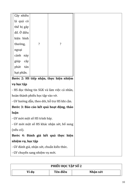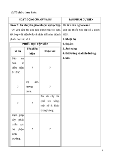 quả, GV yêu cầu HS hoàn thành phiếu học cảnh quan, bảo vệ môi trường