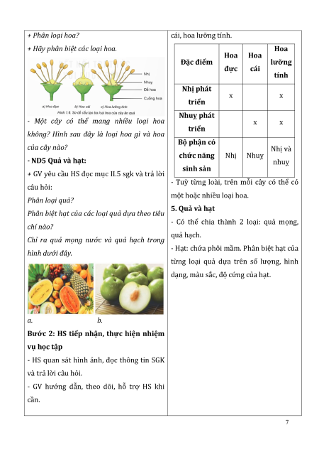 Bước 2: HS tiếp nhận, thực hiện nhiệm thuật, một số loại cây ăn quả vụ học tập