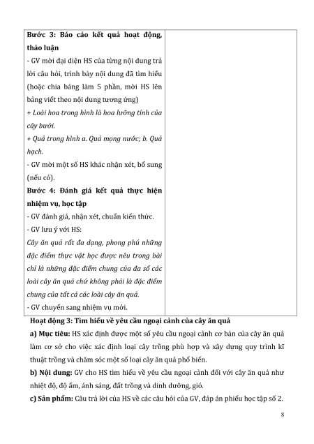 - Có ý thức trồng, chăm sóc cây ăn quả ở gia đình, địa phương.