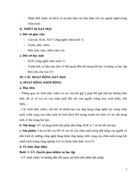 Giáo án Công nghệ chăn nuôi 11 Kết nối tri thức | Giáo án Công nghệ 11 mới, chuẩn nhất