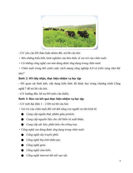 - Trình bày được vai trò và triển vọng của chăn nuôi trong bối cảnh cuộc cách mạng công nghiệp 4.0.