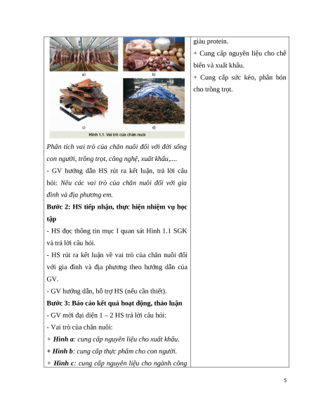 Hoạt động 1. Tìm hiểu về vai trò của chăn nuôi