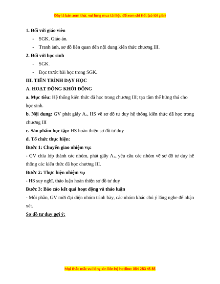 - Tranh ảnh, sơ đồ liên quan đến nội dung kiến thức chương III.