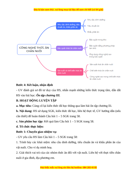 - Hệ thống được các kiến thức chương III – Công nghệ thức ăn chăn nuôi.