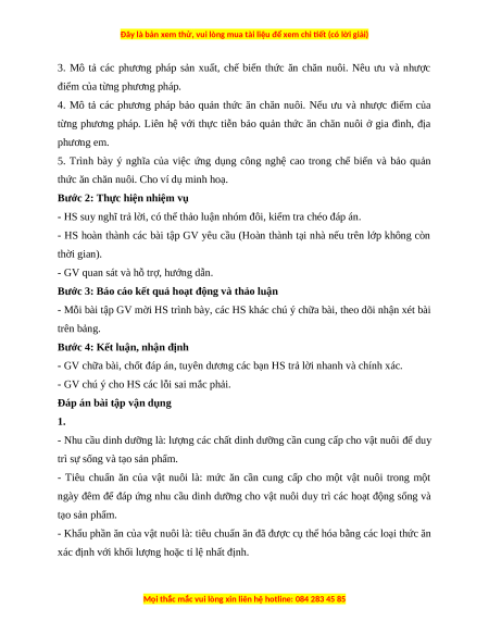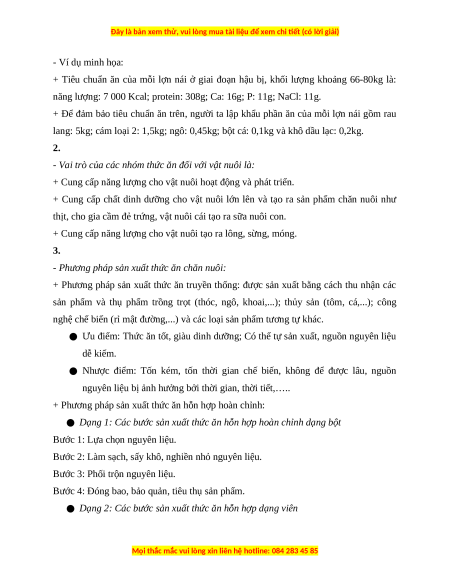 3. Mô tả các phương pháp sản xuất, chế biến thức ăn chăn nuôi. Nêu ưu và nhược