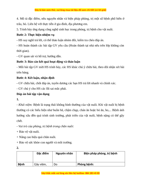 ● Hệ thống được các kiến thức đã học về phòng, trị bệnh cho vật nuôi.