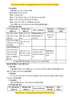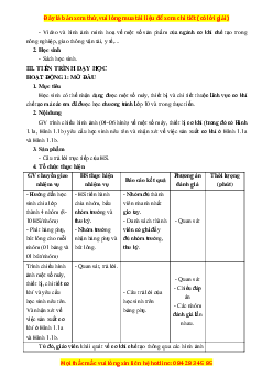 4. Tổ chức thực hiện GV chuyển giao HS thực hiện Phương án Thời lượng Báo cáo kết quả nhiệm vụ nhiệm vụ đánh giá (phút) - Hướng dẫn học - HS tiến hành - Nhóm đủ thành sinh chia lớp chia nhóm, bầu viên nhanh nhất thành 4 nhóm (8- nhóm trưởng và giơ tay. 10 HS/nhóm) thư ký. - Danh sách thành - Quan sát - Phát bảng phụ, - Nhóm trưởng viên có ghi đầy bút lông cho mỗi