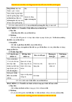 4. Tổ chức thực hiện GV chuyển giao HS thực hiện Phương án Thời lượng Báo cáo kết quả nhiệm vụ nhiệm vụ đánh giá (phút) Trình chiếu Hình 1.3 và yêu cầu học Quan sát và thực sinh thực hiện hiện cùng với các Trình bày trên Quan sát và nhiệm vụ (Kết hợp thành viên trong bảng phụ nhận xét mục Khám phá và nhóm Kết nối năng lực) Khái quát về đặc Nghe và tiếp nhận điểm của cơ khí Ghi nhận thông tin chế tạo