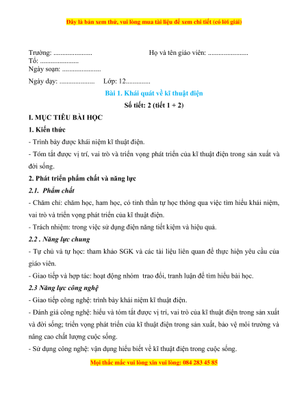 Bộ giáo án Công nghệ Điện - Điện tử 12 Cánh diều được cập nhật liên tục trong gói này từ nay đến hết tháng 3/2025.