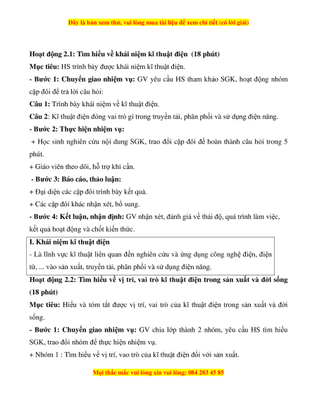 - Giao tiếp công nghệ: trình bày khái niệm kĩ thuật điện.