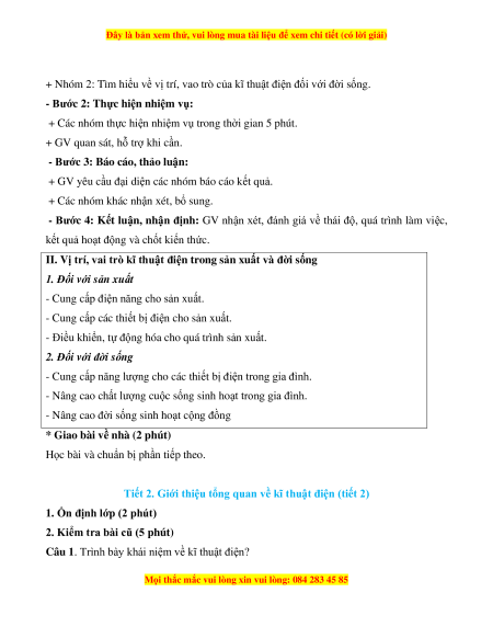 Tiết 2. Giới thiệu tổng quan về kĩ thuật điện (tiết 2)