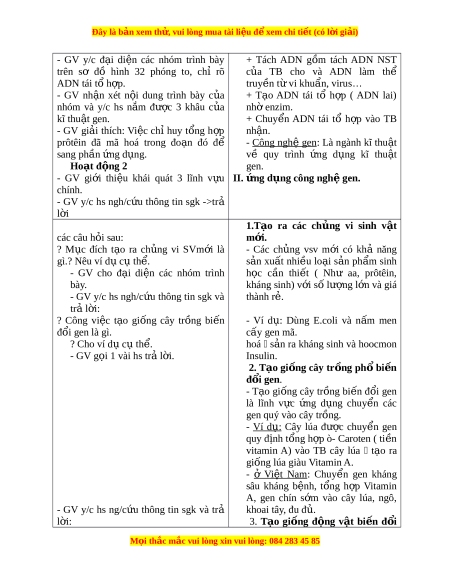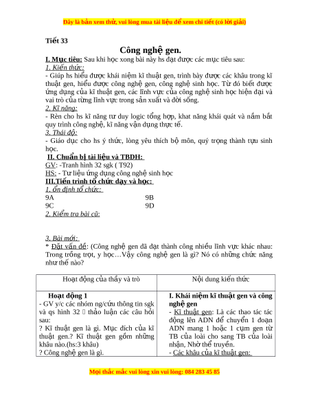 Đây là bản xem th , vu ử i lòng mua tài li u ệ đ xe ể m chi ti t (c ế ó l i ờ gi i ả ) Ti t ế 33 Công nghệ gen. I. M c t