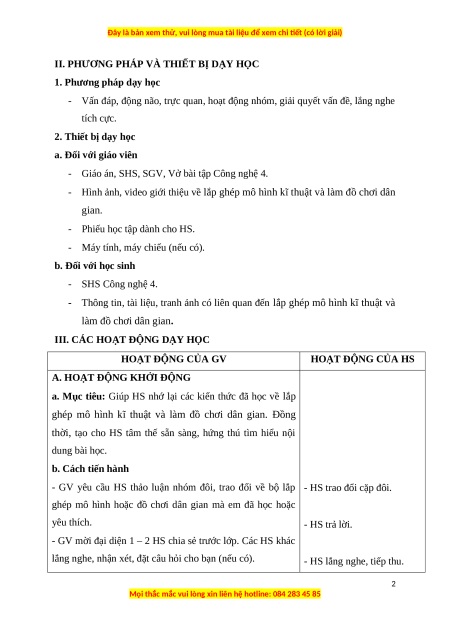 II. PHƯƠNG PHÁP VÀ THIẾT BỊ DẠY HỌC