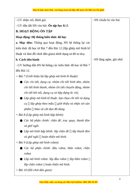 - Hệ thống được các kiến thức đã học từ Bài 7 đến Bài 12 (lắp ghép mô