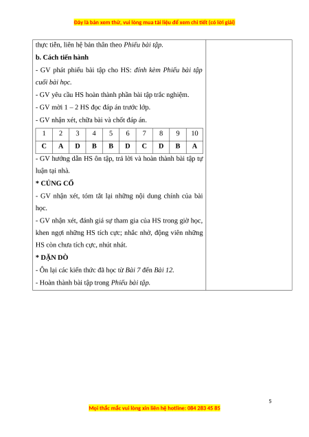 - GV hướng dẫn HS hệ thống các kiến thức đã học từ Bài 7 đến Bài 12.