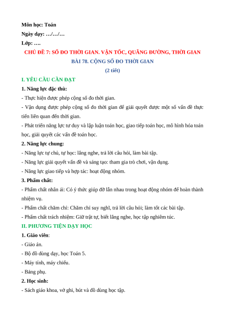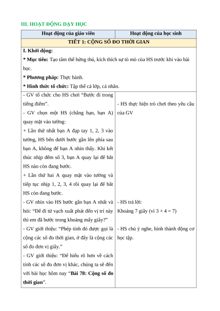BÀI 78. CỘNG SỐ ĐO THỜI GIAN (2 tiết)