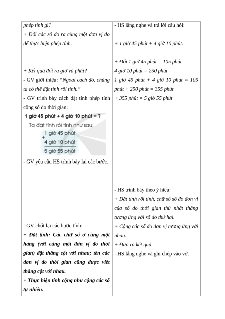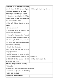 - HS nhận biết được các tính phép cộng số đo thời gian, phép trừ số đo thời gian. * Cách tiến hành: