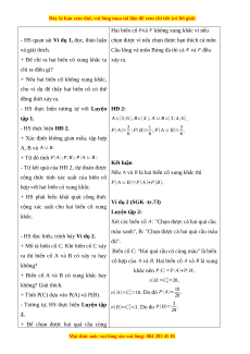 + HS khái quát: hai biến cố A và B Hai biến cố Avà B xung khắc khi và chỉ khi