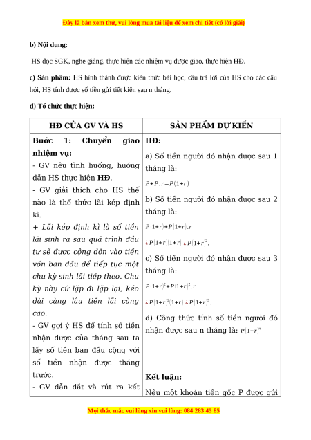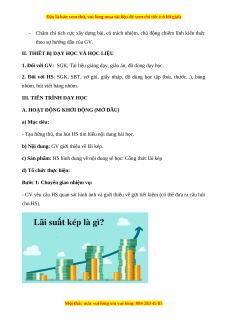 - HS biết sử dụng công thức lãi kép để tính số tiền thu được (cả vốn lẫn lãi) sau N kì