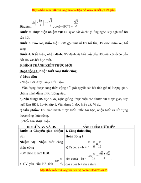 Đây là bản xem th , vu ử i lòng mua tài li u ệ đ xe ể m chi ti t (c ế ó l i ờ gi i ả ) 9 2 sin 3 Đáp án: 4 2 , cos(– 690° ) = 2 . Bư c ớ 2: Th c ự hi n ệ nhi m ệ v :
