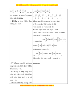 ậ sin(a – b) = sin a cos b – cos a sin b. - GV ti p ế t c ụ cho HS sử d ng ụ K t ế luận: công th c ứ v a ừ thi t ế l p ậ ở HĐ1c đ t ể ính sin(a + b). - Từ đó suy ra b ng ả công th c ứ c ng, ộ yêu c u ầ HS về nhà ch ng ứ minh công th c ứ tan(a – b) và tan(a + b). - Cho HS nh c ắ l i ạ khung ki n ế M i