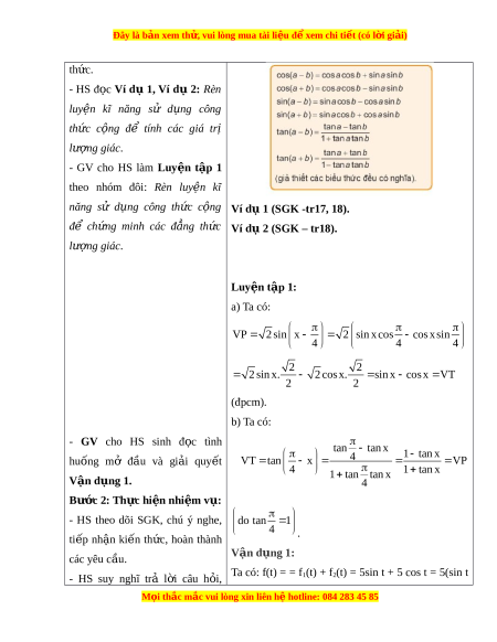 ế các bài tính giá trị lư ng ợ giác, ch ng m ứ inh đ ng t ẳ h c ứ lư ng gi ợ ác. b) N i ộ dung: HS đ c ọ SGK, nghe gi ng, ả th c ự hi n ệ các nhi m ệ v ụ đư c ợ giao, suy nghĩ làm HĐ1, Luy n t ệ p ậ 1, V n ậ d ng 1, đ ụ c hi ọ u các ể Ví d . ụ c) S n ả ph m