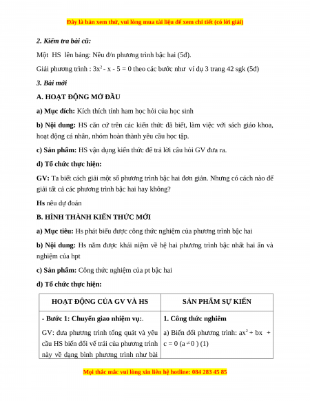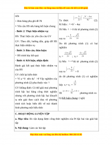 Giáo án Công thức nghiệm của phương trình bậc hai Toán 9 Học kì 2
