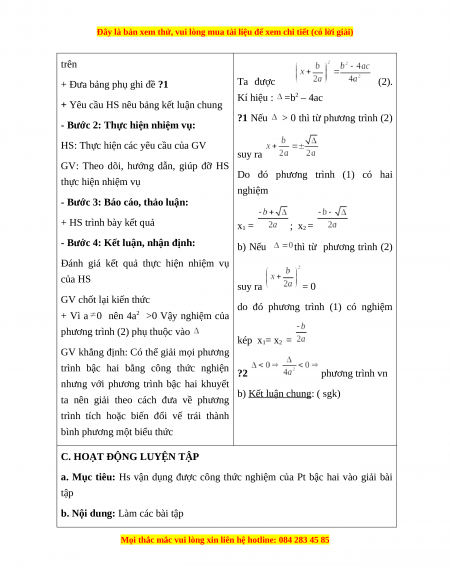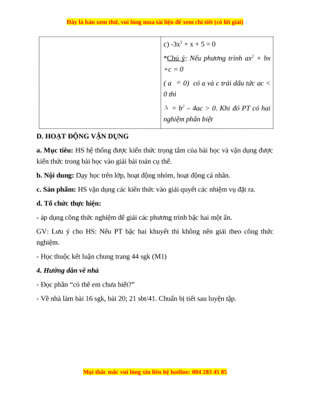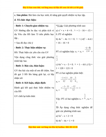 c) Sản phẩm: Công thức nghiệm của pt bậc hai
