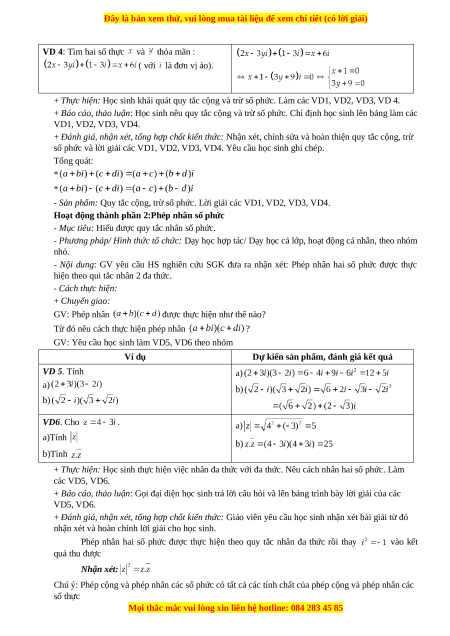 - Sản phẩm: Quy tắc cộng, trừ số phức. Lời giải các VD1, VD2, VD3, VD4.