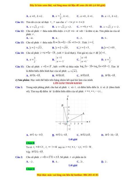 Câu 1: Trong mặt phẳng phức cho hai số phức và có điểm biểu diễn là và (theo hình