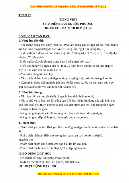 KHBD lớp 3_Sách Cánh Diều………………………………………...…………………………………………………...… TUẦN 32 TIẾNG VIỆT