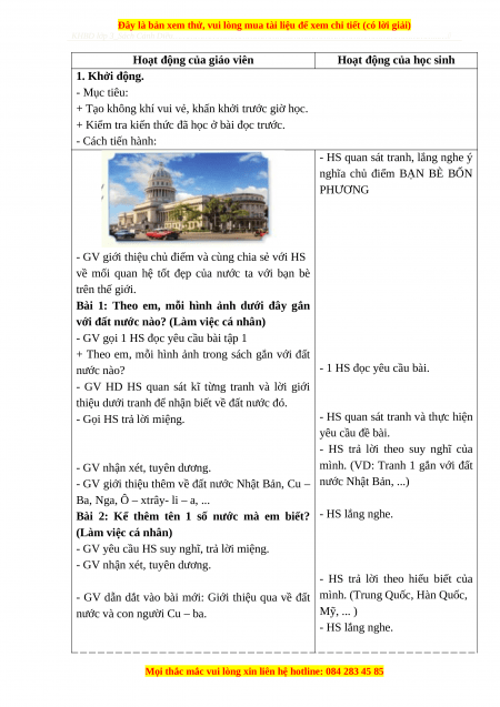 Hoạt động của học sinh 1. Khởi động. - Mục tiêu: