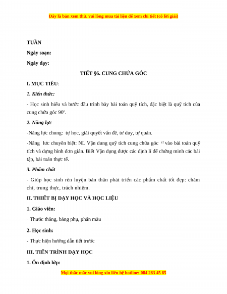 TIẾT §6. CUNG CHỨA GÓC I. MỤC TIÊU:
