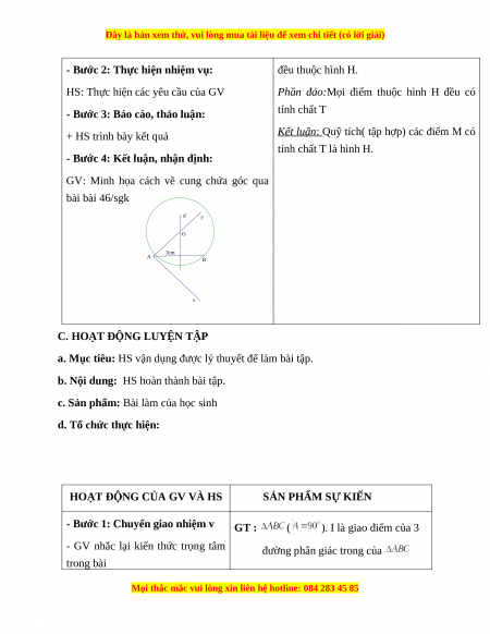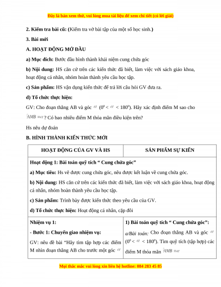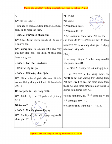 Giáo án Cung chứa góc Toán 9 Học kì 2