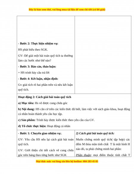 Gv giải tích rõ hai phần trên và nêu kết luận quỹ tích.
