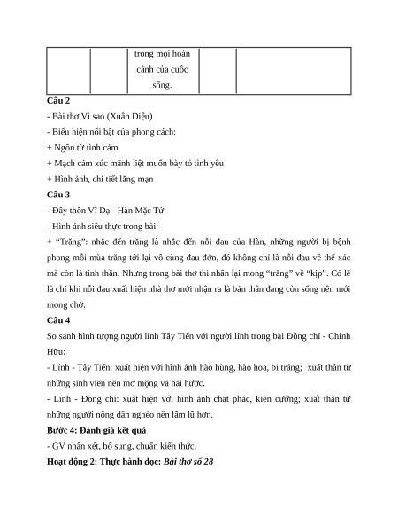 - Vận dụng các kiến thức đã học về thơ để thực hành đọc văn bản: Bài thơ số 28. 3. Về phẩm chất