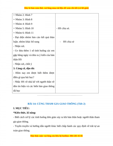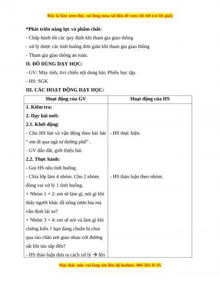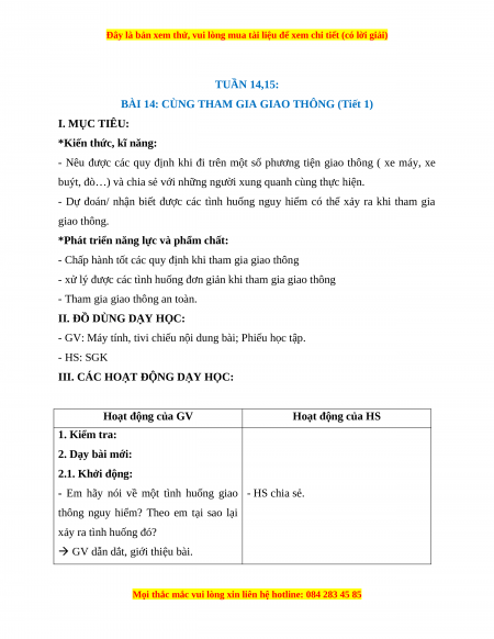 BÀI 14: CÙNG THAM GIA GIAO THÔNG (Tiết 1) I. MỤC TIÊU: